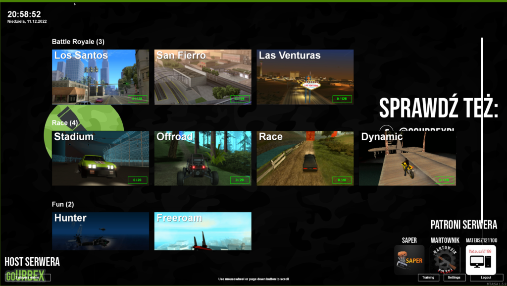 Serwer MTA GoUrbex posiada tryb multigame czyli łączy różne tryby rozgrywki takie jak wyścigi czy battle royale.